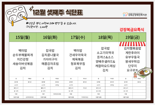2025³â 12¿ù 2ÁÖ ½Ä´ÜÇ¥(12. 8. ~ 12. 12.)