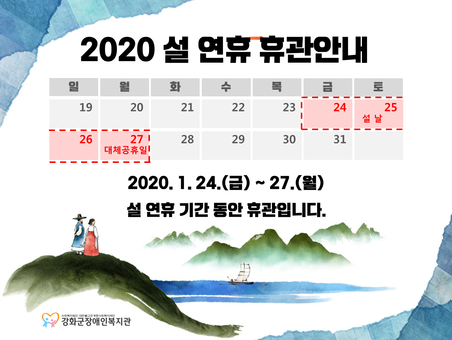 ¼³ ¿¬ÈÞ ±â°£ÀÎ 1¿ù 24ÀÏ(±Ý) ~ 27ÀÏ(¿ù) ±îÁö º¹Áö°ü ÈÞ°üÀÔ´Ï´Ù.