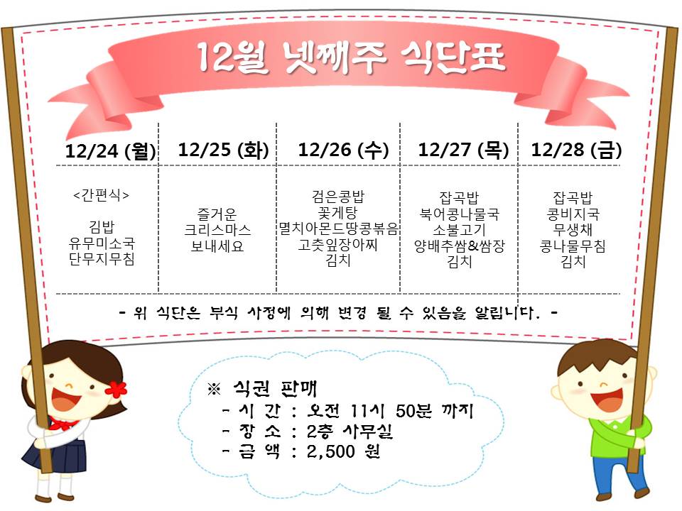 12¿ù ³Ý° ÁÖ ½Ä´ÜÇ¥