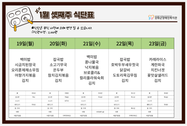 2026³â 1¿ù 3ÁÖ ½Ä´ÜÇ¥(1. 19. ~ 1. 23.)