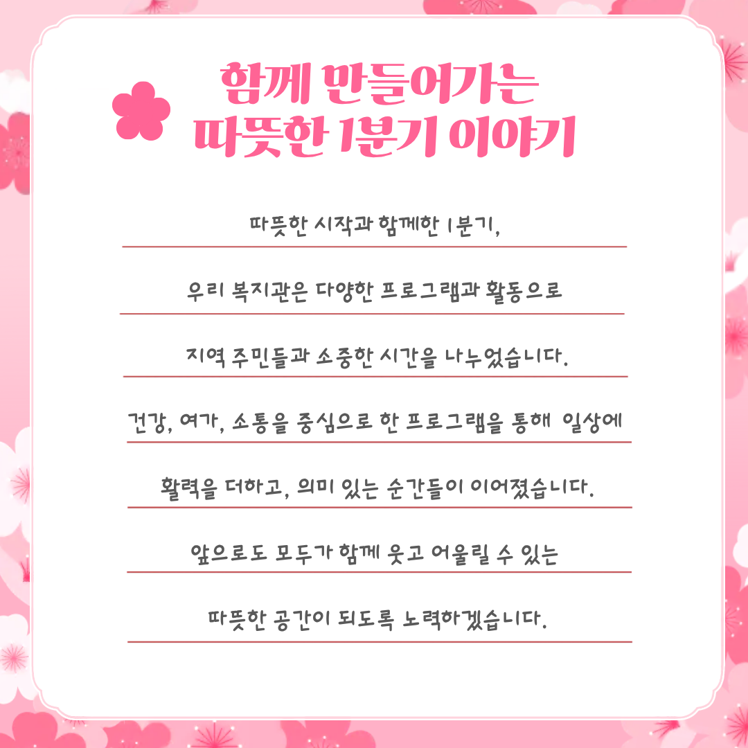°È±ºÀå¾ÖÀκ¹Áö°ü 2026³â 1ºÐ±â, º½ À̾߱â 🌼