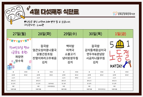 2026³â 4¿ù 5ÁÖ ½Ä´ÜÇ¥(4. 27. ~ 5. 1.)