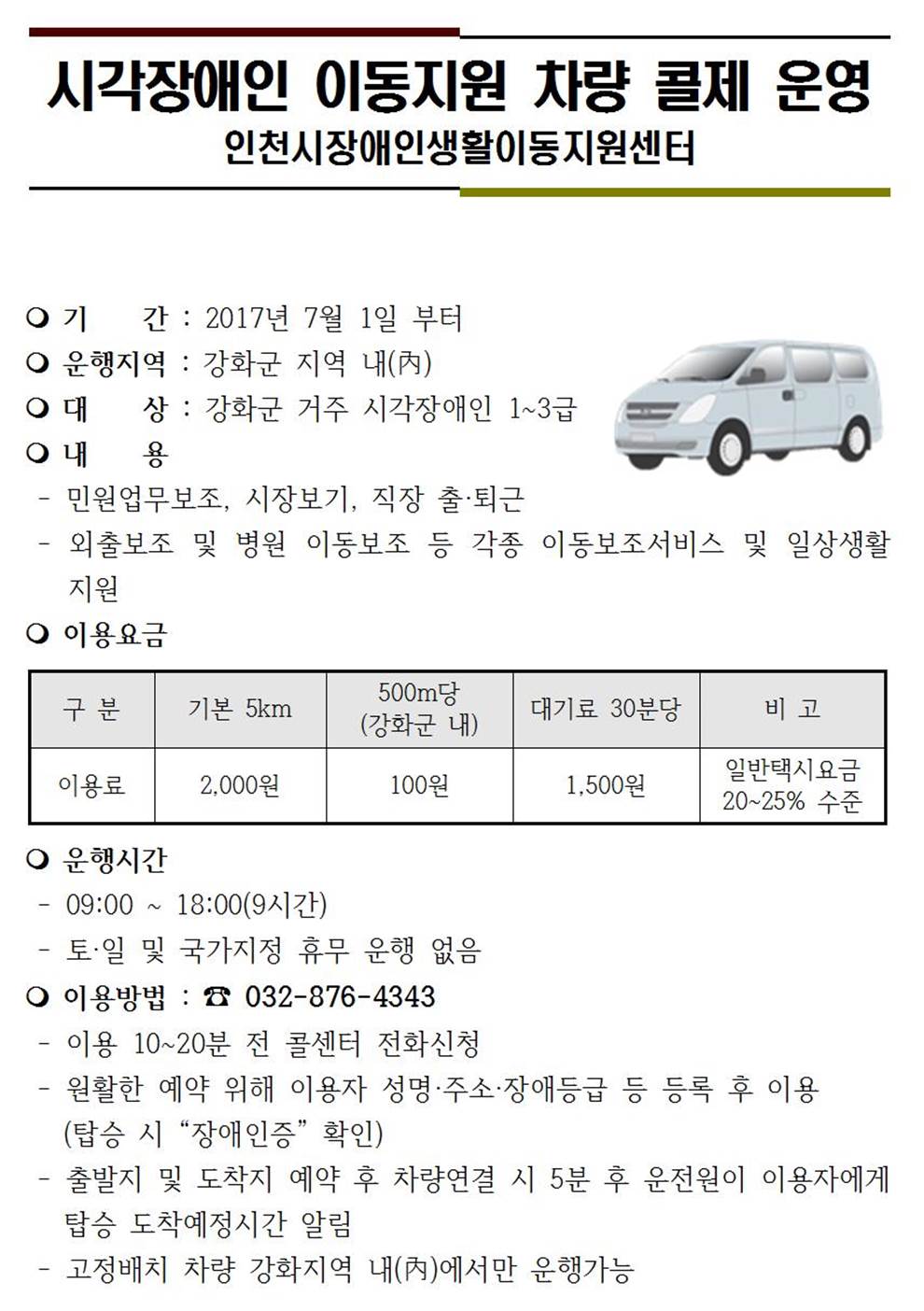 ½Ã°¢Àå¾ÖÀÎ À̵¿Áö¿ø Â÷·® ÄÝÁ¦ ¿î¿µ¾È³»