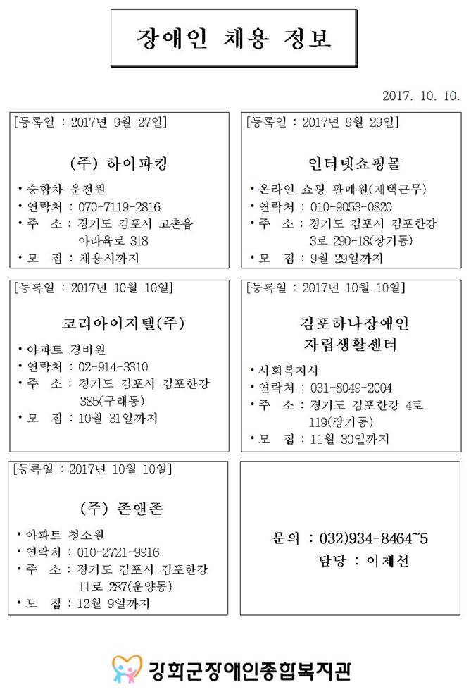 [¾È³»] Àå¾ÖÀÎÀÏÀÚ¸® ä¿ëÁ¤º¸ ¾È³»(10¿ù)