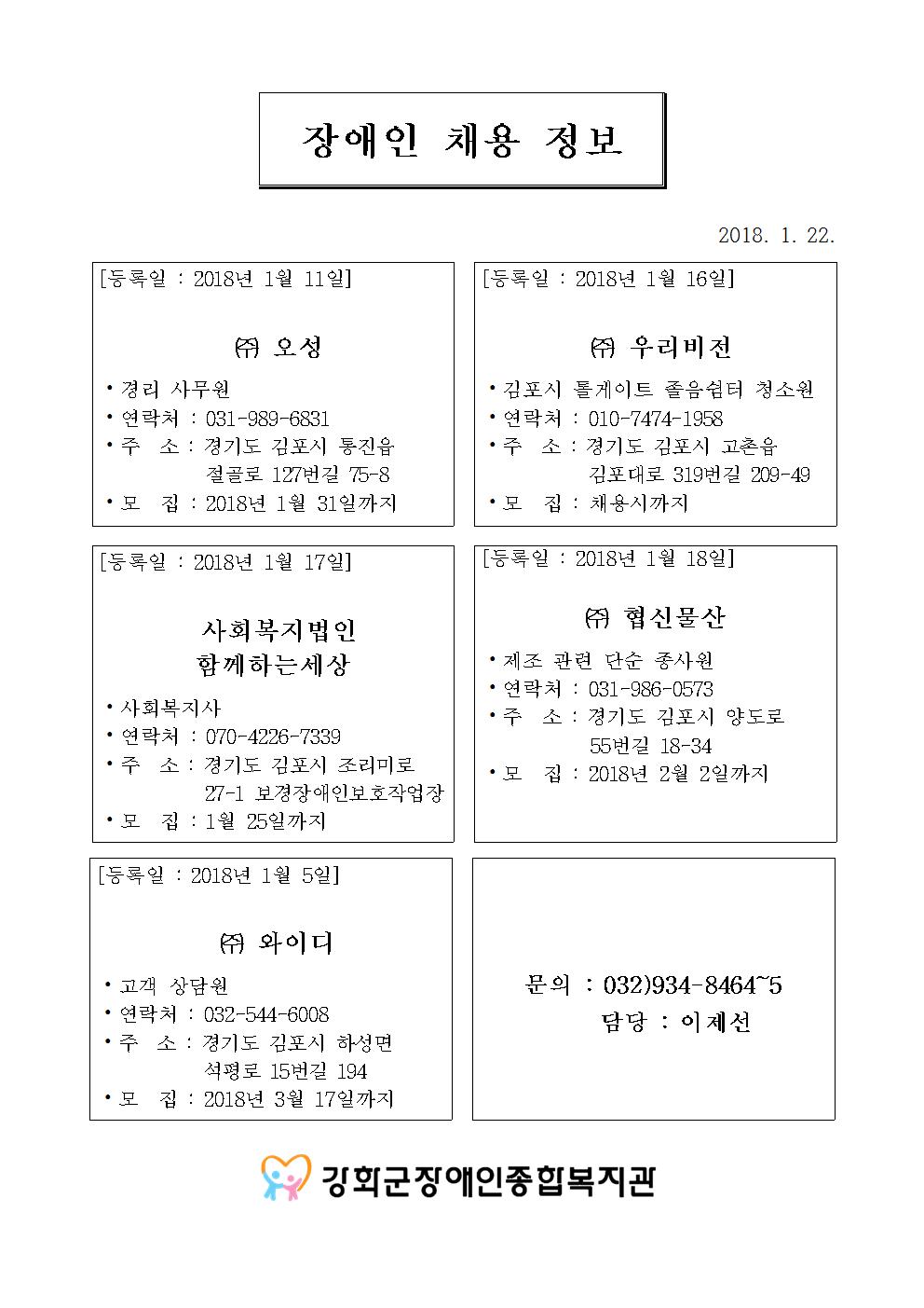 [¾È³»] Àå¾ÖÀÎÀÏÀÚ¸® ä¿ëÁ¤º¸ ¾È³»(2018³â 1¿ù-1)