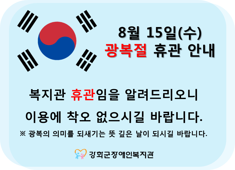 8¿ù 15ÀÏ(¼ö) ±¤º¹Àý ÈÞ°ü ¾È³»