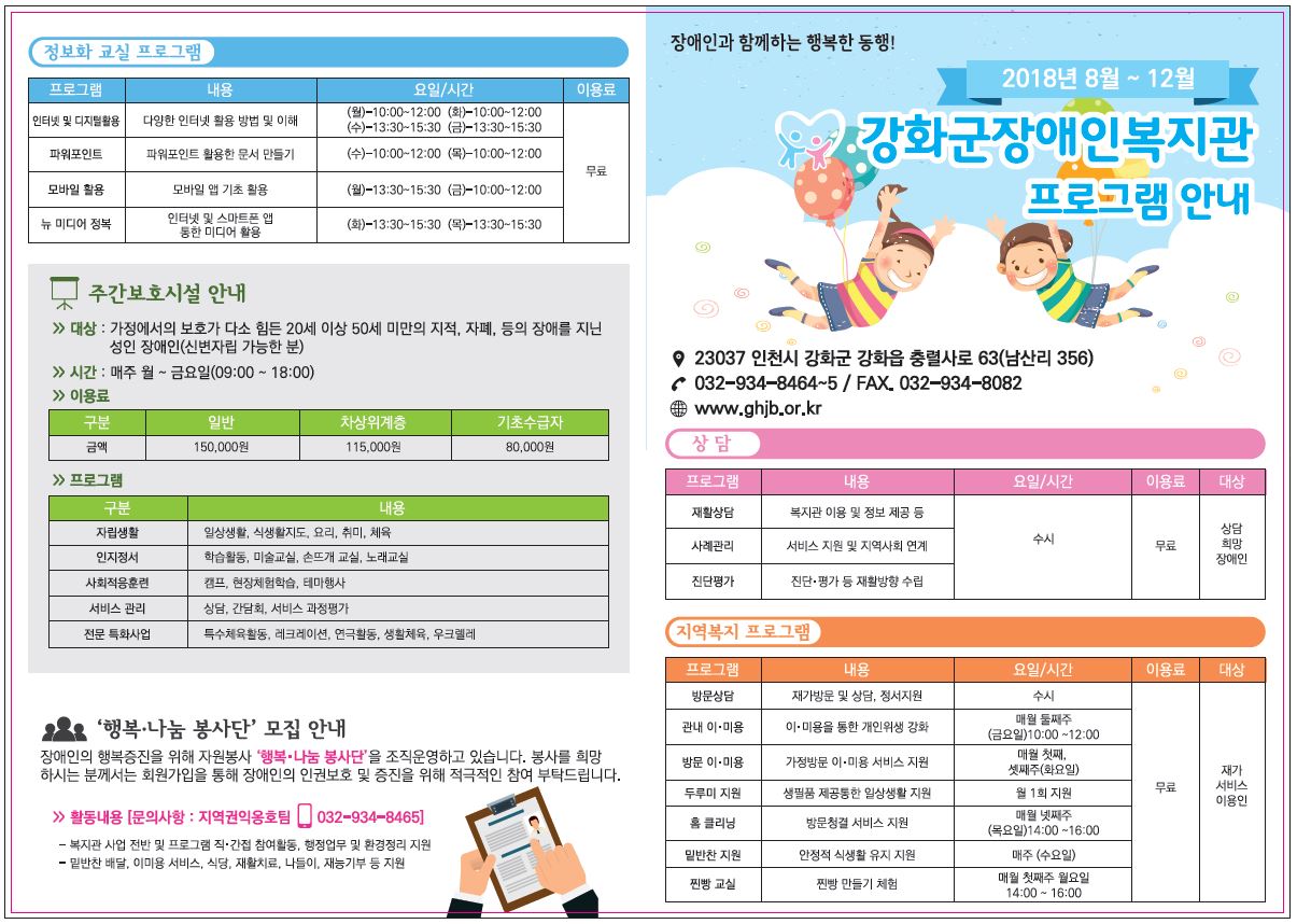 2018³â °È±ºÀå¾ÖÀκ¹Áö°ü ÇÁ·Î±×·¥ ¾È³»