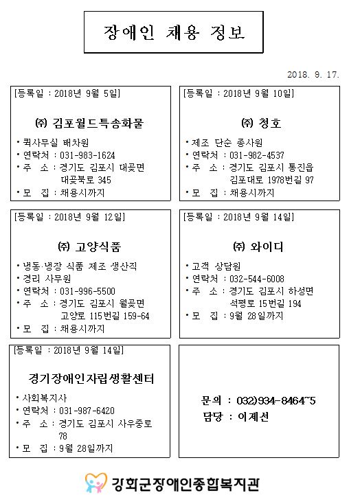 [¾È³»] Àå¾ÖÀÎÀÏÀÚ¸® ä¿ëÁ¤º¸ ¾È³»(2018³â 9¿ù)
