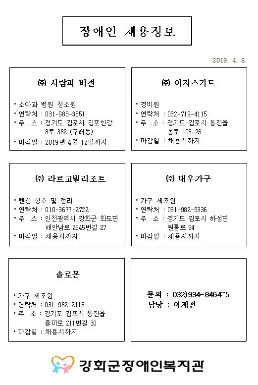[¾È³»] Àå¾ÖÀÎÀÏÀÚ¸® ä¿ëÁ¤º¸ ¾È³»(2019³â 4¿ù)
