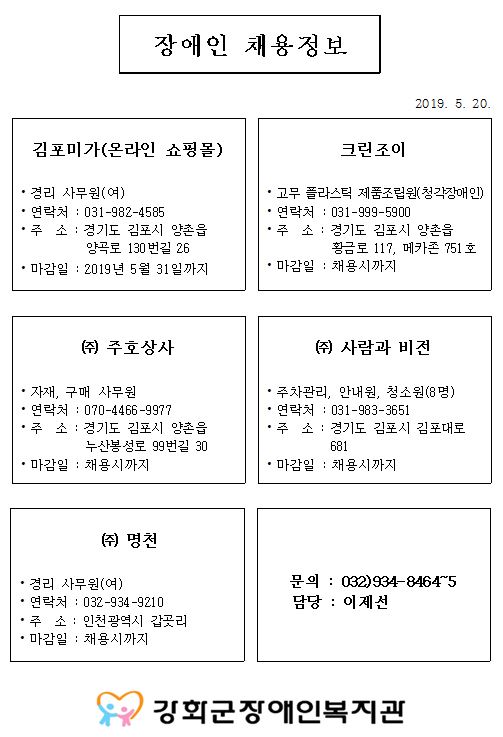 [¾È³»] Àå¾ÖÀÎÀÏÀÚ¸® ä¿ëÁ¤º¸ ¾È³»(2019³â 5¿ù-2)