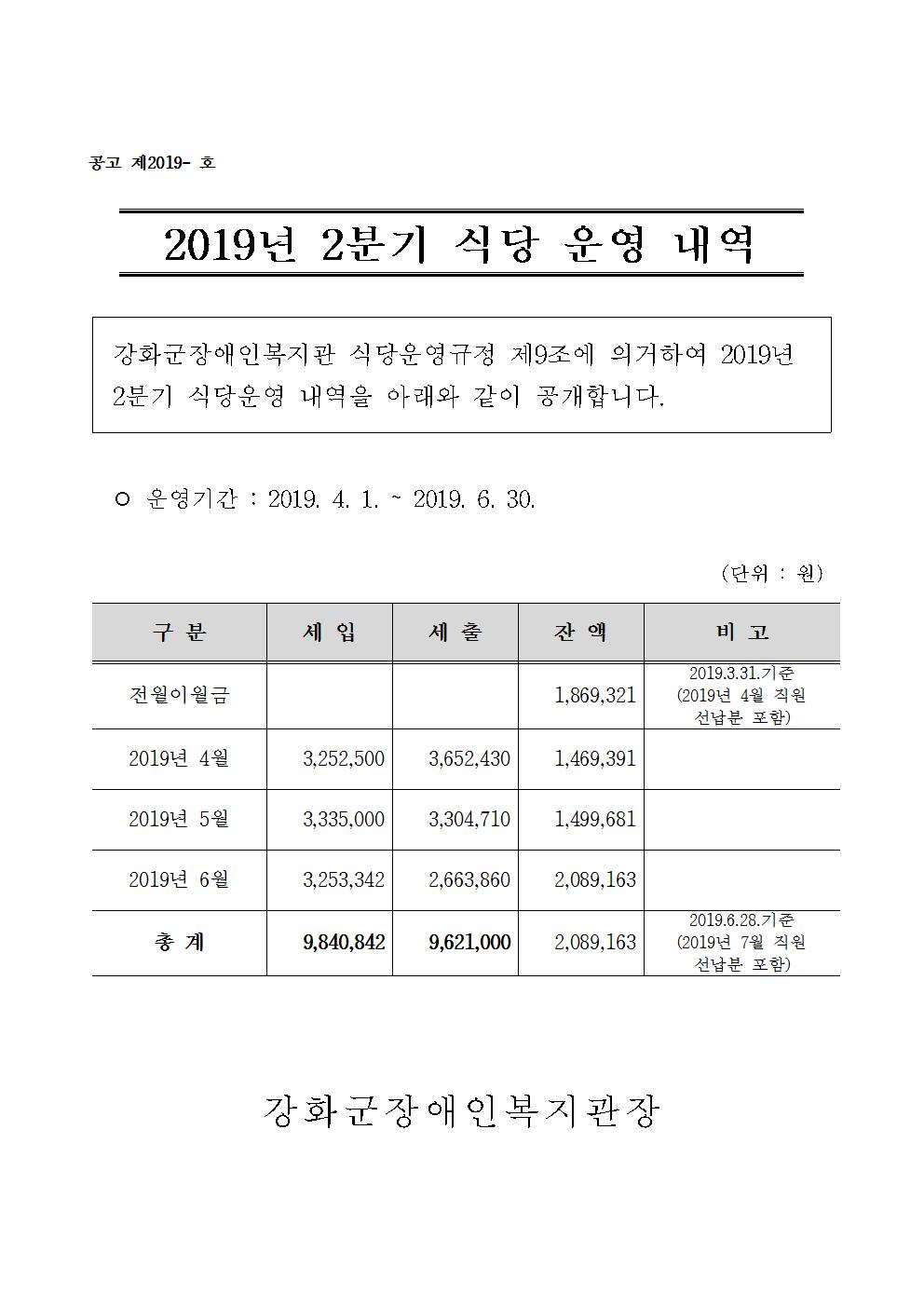[°ø°í] 2019³â(4¿ù~6¿ù) 2ºÐ±â ½Ä´ç ¿î¿µ ³»¿ª °ø°í
