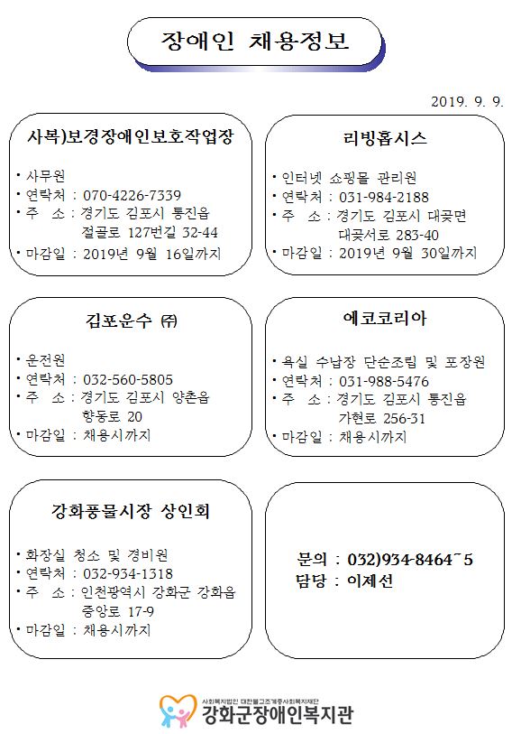 [¾È³»] Àå¾ÖÀÎÀÏÀÚ¸® ä¿ëÁ¤º¸ ¾È³»(2019³â 9¿ù)