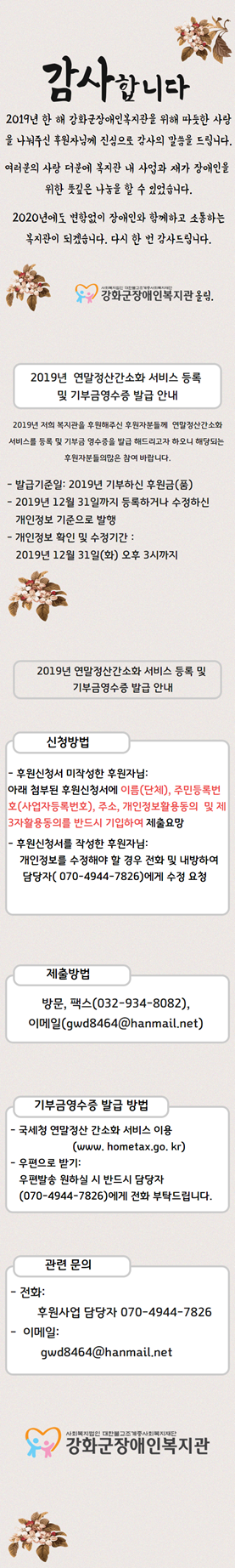 2019³â ¿¬¸»Á¤»ê°£¼Òȼºñ½º µî·Ï ¹× ±âºÎ±Ý¿µ¼öÁõ ¹ß±Þ ¾È³»