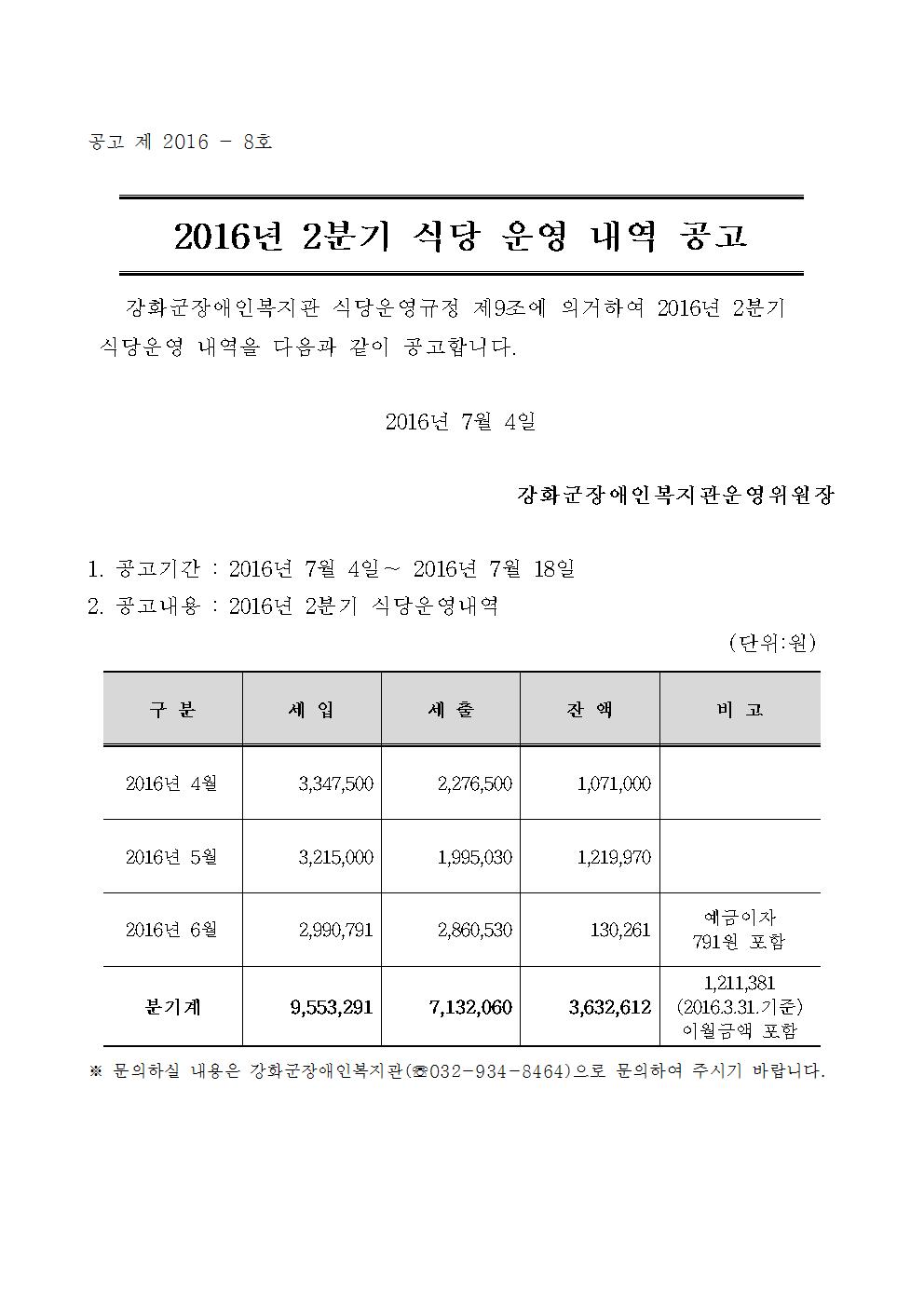 [°ø°í] 2016³â 2ºÐ±â ½Ä´ç ¿î¿µ ³»¿ª °ø°í