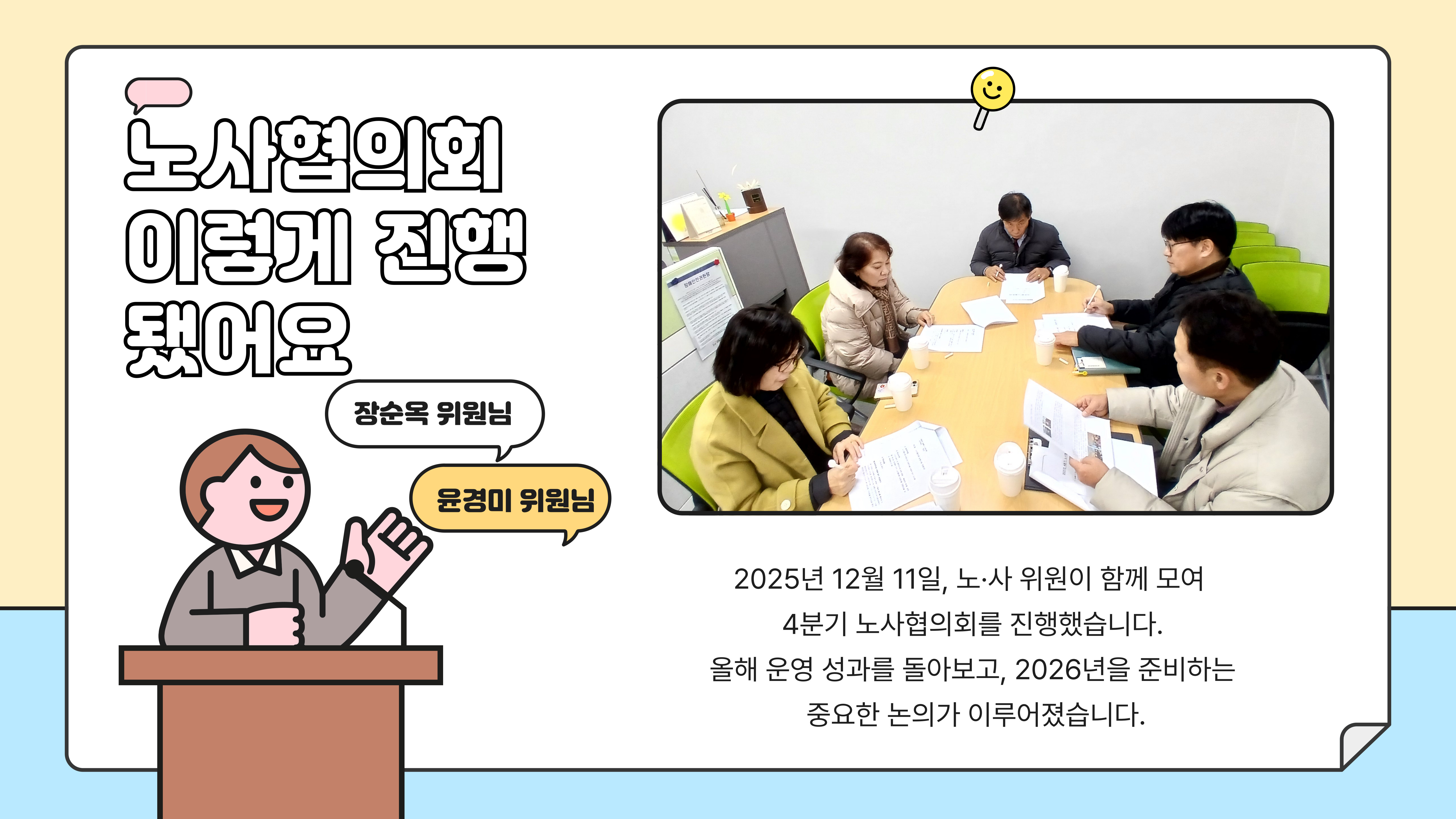 2025³â 12¿ù 11ÀÏ, 4ºÐ±â ³ë»çÇùÀÇȸ°¡ °³ÃֵǾú½À´Ï´Ù.