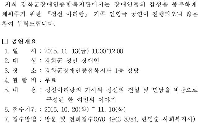 [¾È³»] 'Á¤¼± ¾Æ¸®¶û' ÀÎÇü±Ø(11. 13.)¿¡ ÃÊ´ëÇÕ´Ï´Ù.