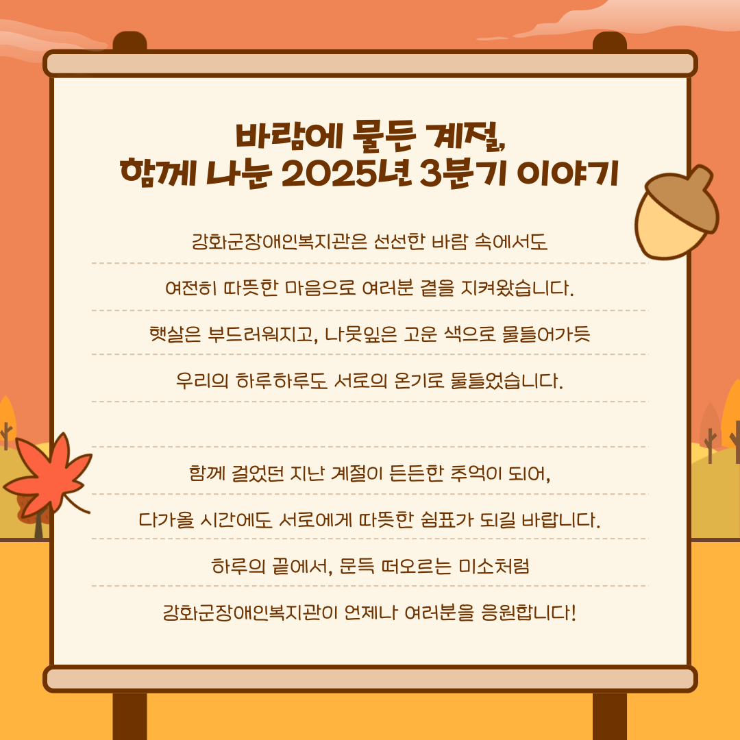¾Ë¾ËÀÌ À;´ø 2025³â °¡À», °È±ºÀå¾ÖÀκ¹Áö°üÀº ¹è¿ò°ú ³ª´®À¸·Î ÇÏ·çÇϷ縦 ¹°µé¿´½À´Ï´Ù.