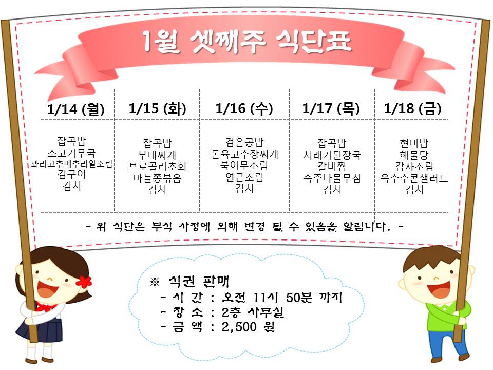 1¿ù ¼Â° ÁÖ ½Ä´ÜÇ¥