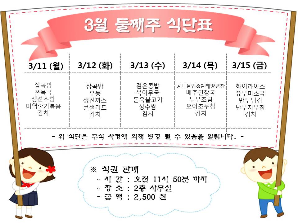 3¿ù µÑ° ÁÖ ½Ä´ÜÇ¥