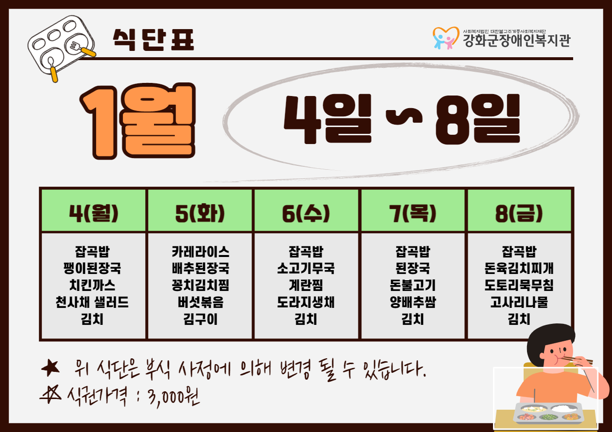 2021³â 1¿ù 1ÁÖ ½Ä´ÜÇ¥(1. 4. ~ 1. 8.)