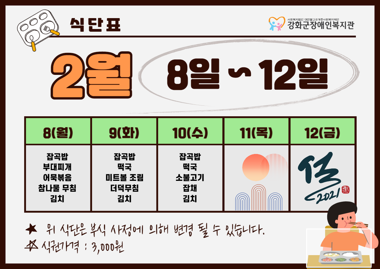 2021³â 2¿ù 2ÁÖ ½Ä´ÜÇ¥(2. 8. ~ 2. 12.)