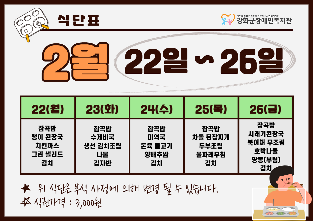 2021³â 2¿ù 4ÁÖ ½Ä´ÜÇ¥(2. 22. ~ 2. 26.)