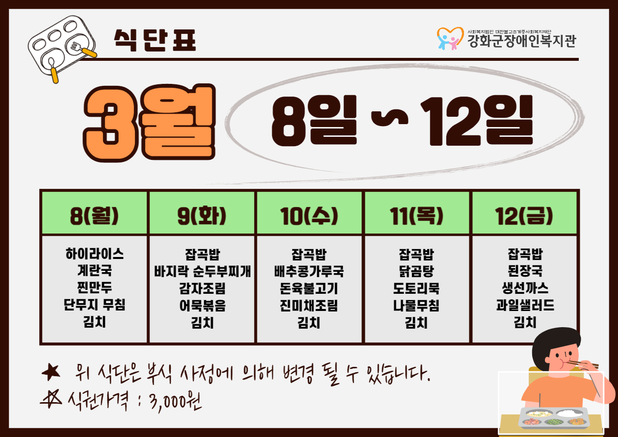 2021³â 3¿ù 2ÁÖ ½Ä´ÜÇ¥(3. 8. ~ 3. 12.)