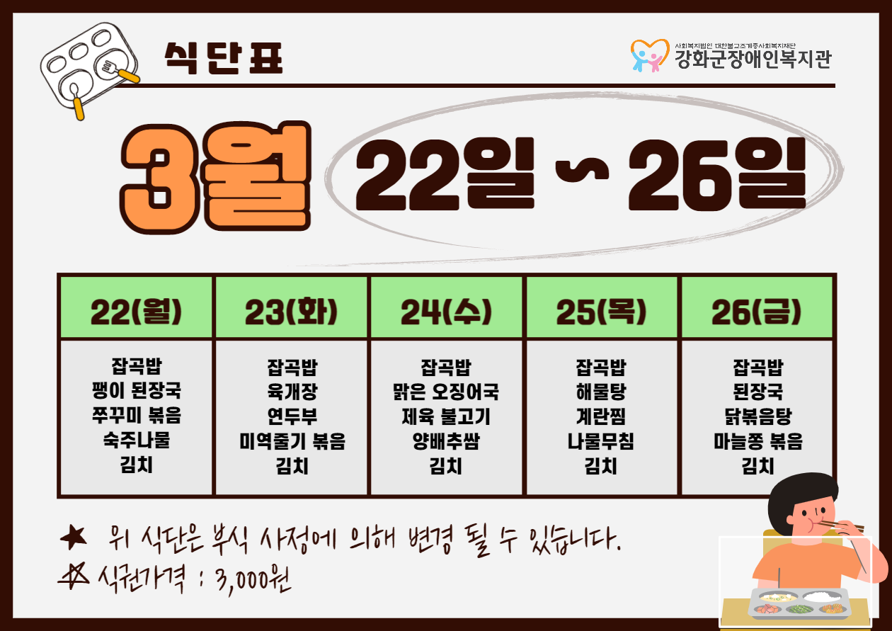 2021³â 3¿ù 4ÁÖ ½Ä´ÜÇ¥(3. 22. ~ 3. 26.)