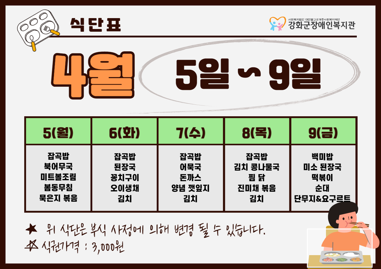 2021³â 4¿ù 2ÁÖ ½Ä´ÜÇ¥(4. 5. ~ 4. 9.)