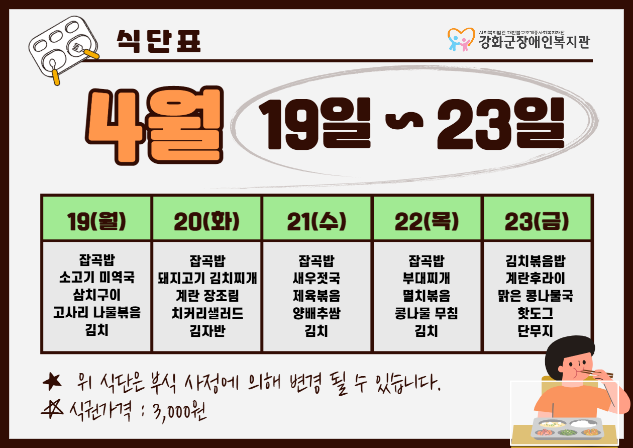 2021³â 4¿ù 4ÁÖ ½Ä´ÜÇ¥(4. 19. ~ 4. 23.)