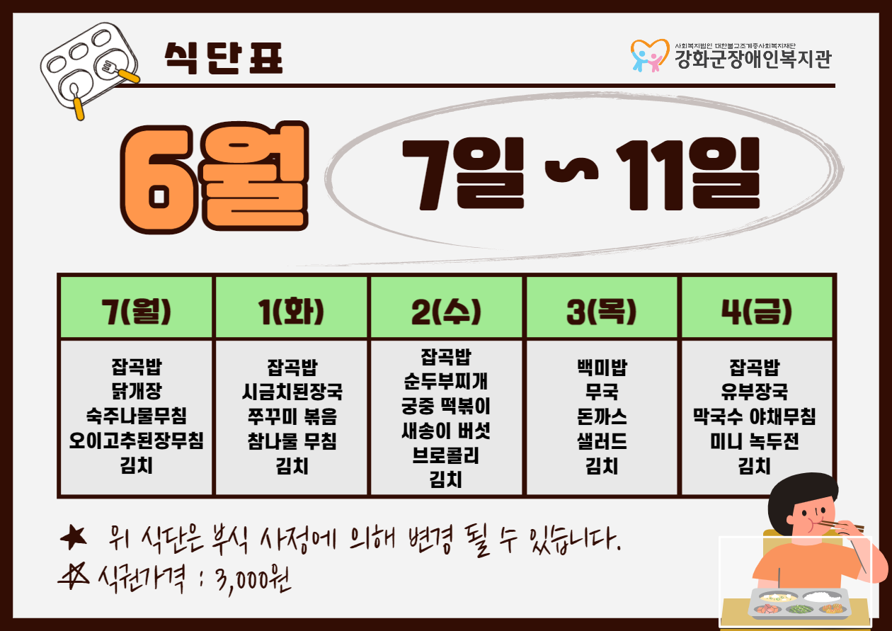 2021³â 6¿ù 2ÁÖ ½Ä´ÜÇ¥(6. 7. ~ 6. 11.)