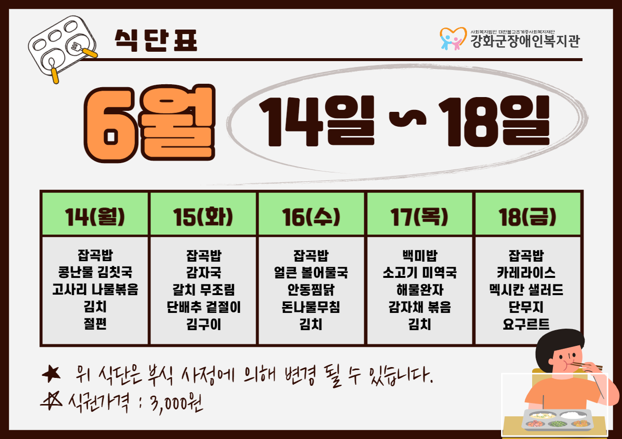 2021³â 6¿ù 3ÁÖ ½Ä´ÜÇ¥(6. 14. ~ 6. 18.)