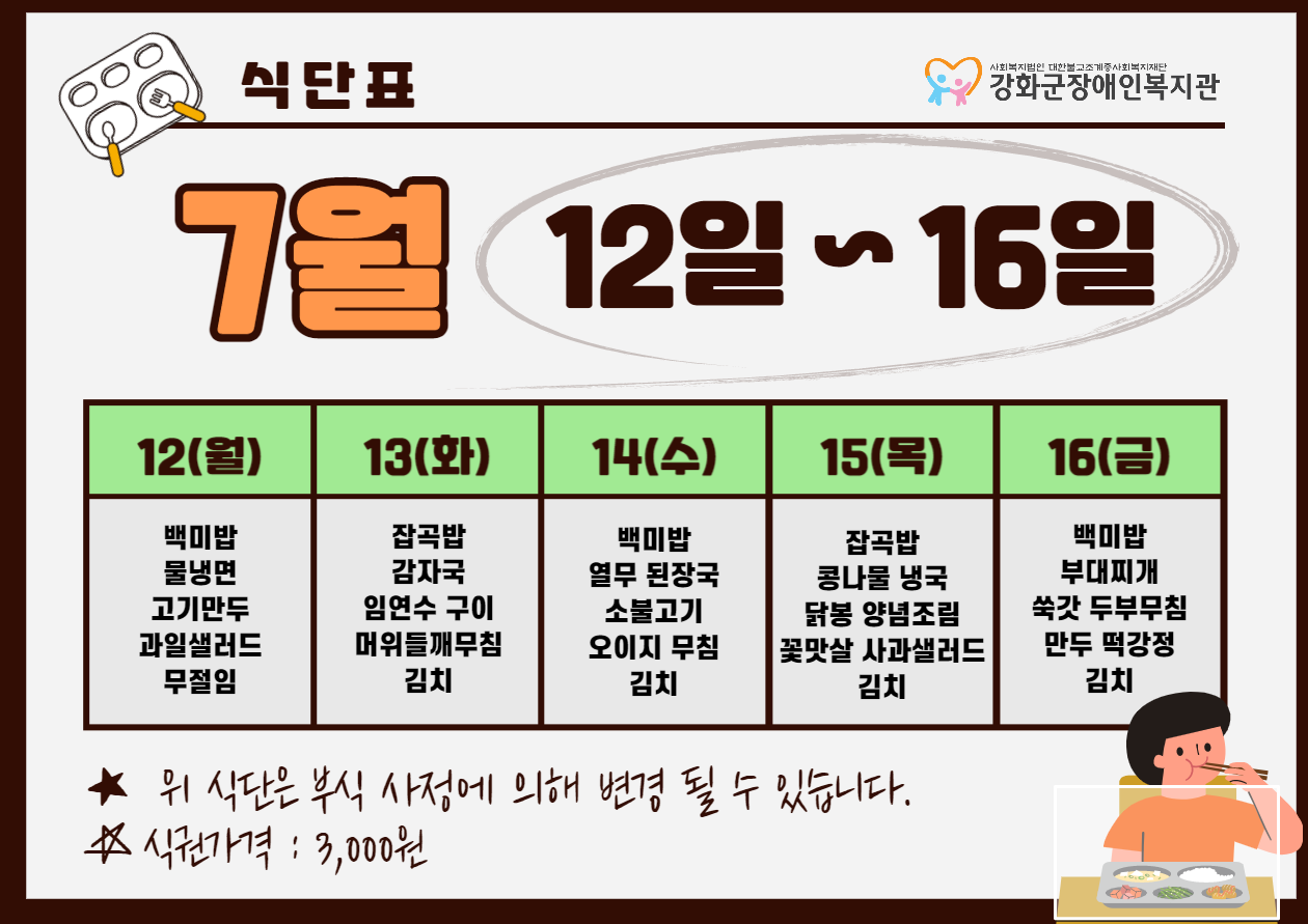 2021³â 7¿ù 3ÁÖ ½Ä´ÜÇ¥(7. 12. ~ 7. 16.)