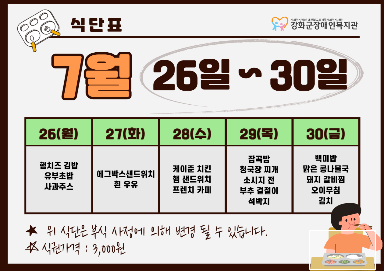 2021³â 7¿ù 5ÁÖ ½Ä´ÜÇ¥(7. 26. ~ 7. 30.)