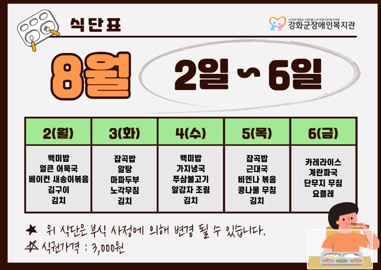 2021³â 8¿ù 1ÁÖ ½Ä´ÜÇ¥(8. 2. ~ 8. 6.)