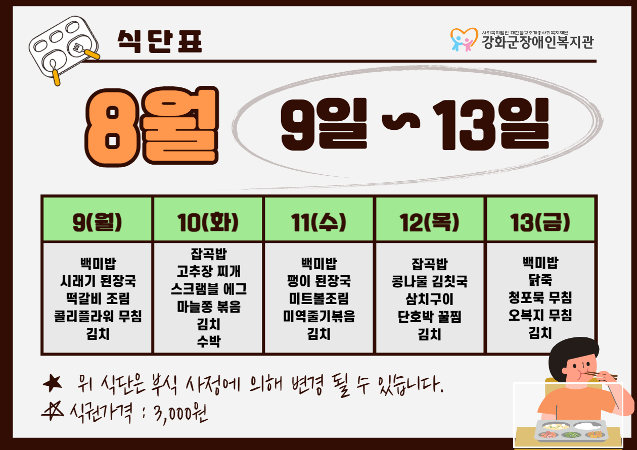 2021³â 8¿ù 2ÁÖ ½Ä´ÜÇ¥(8. 9. ~ 8. 13.)