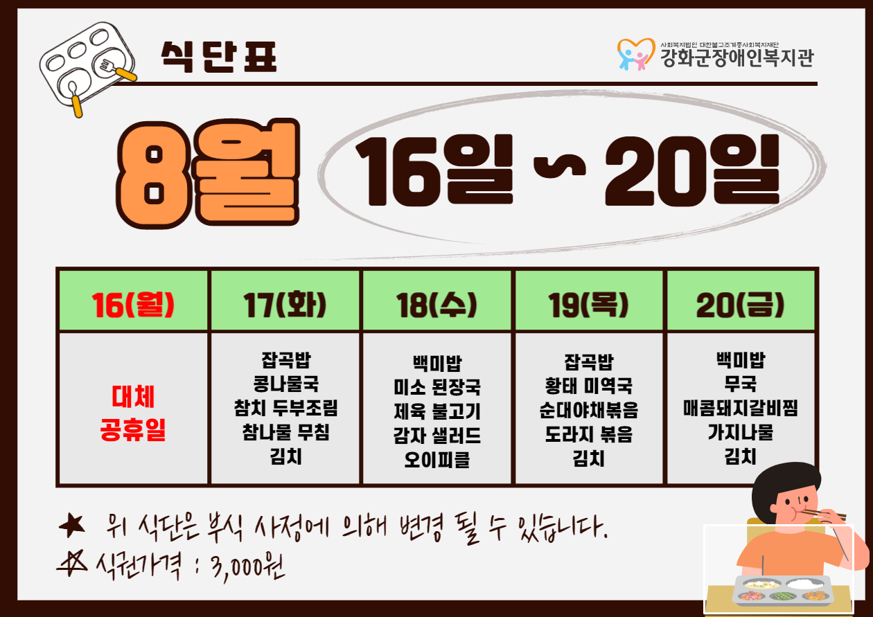 2021³â 8¿ù 3ÁÖ ½Ä´ÜÇ¥(8. 16. ~ 8. 20.)