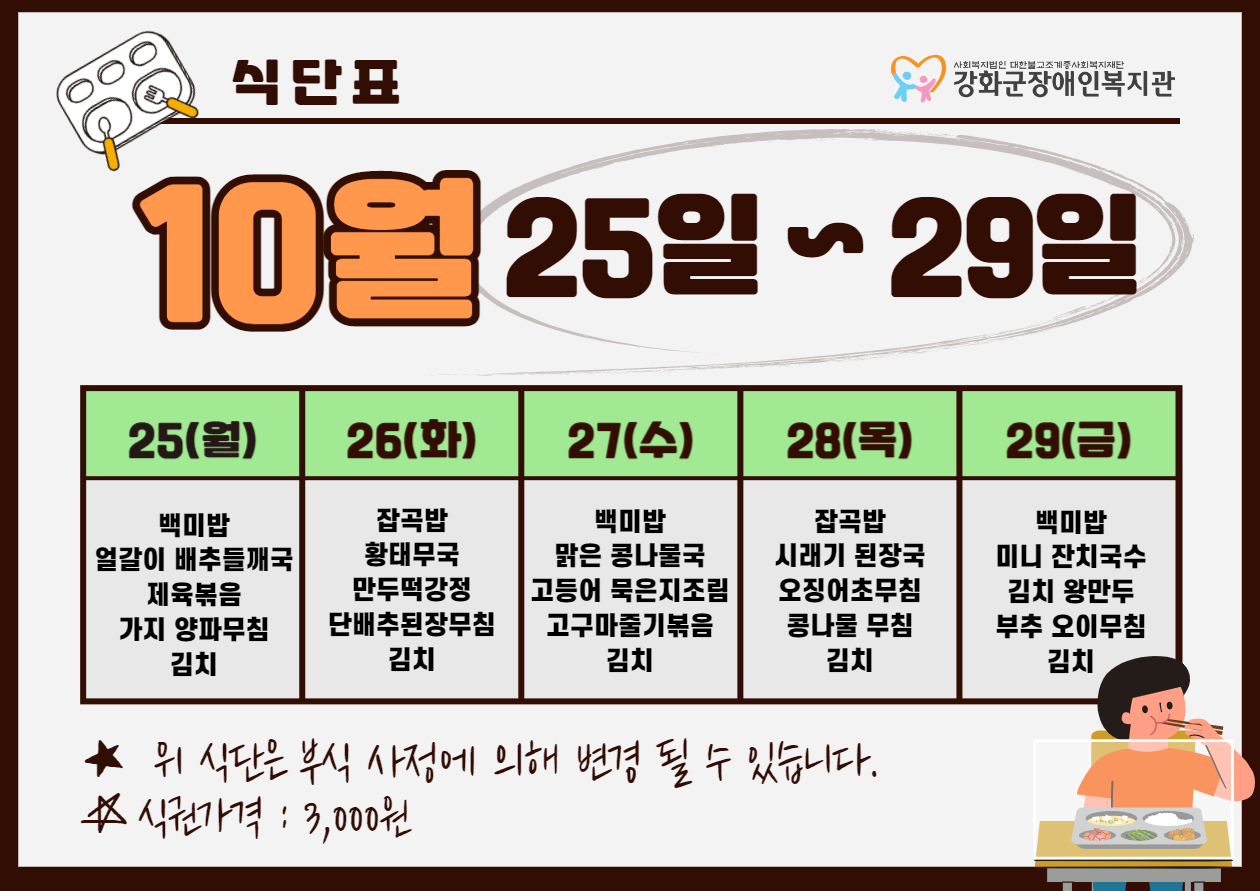 2021³â 10¿ù 4ÁÖ ½Ä´ÜÇ¥(10. 25. ~ 10. 29.)