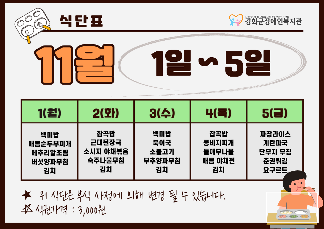 2021³â 11¿ù 1ÁÖ ½Ä´ÜÇ¥(11. 1. ~ 11. 5.)