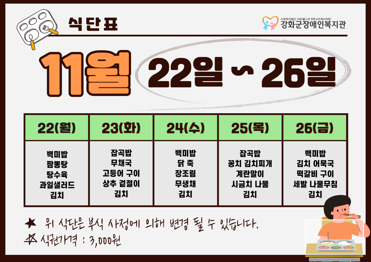 2021³â 11¿ù 4ÁÖ ½Ä´ÜÇ¥(11. 22. ~ 11. 26.)