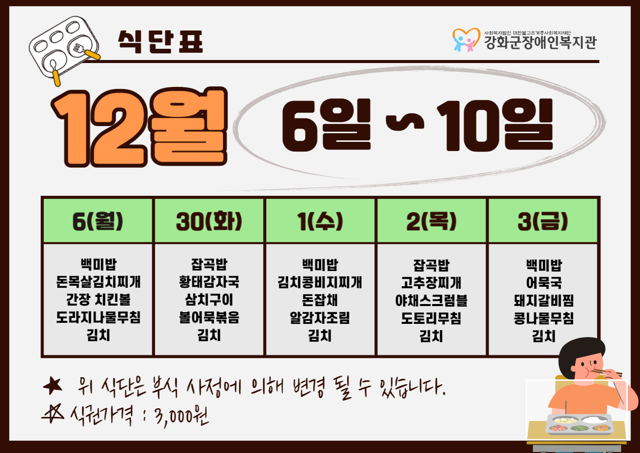 2021³â 12¿ù 2ÁÖ ½Ä´ÜÇ¥(12. 6. ~ 12. 10)