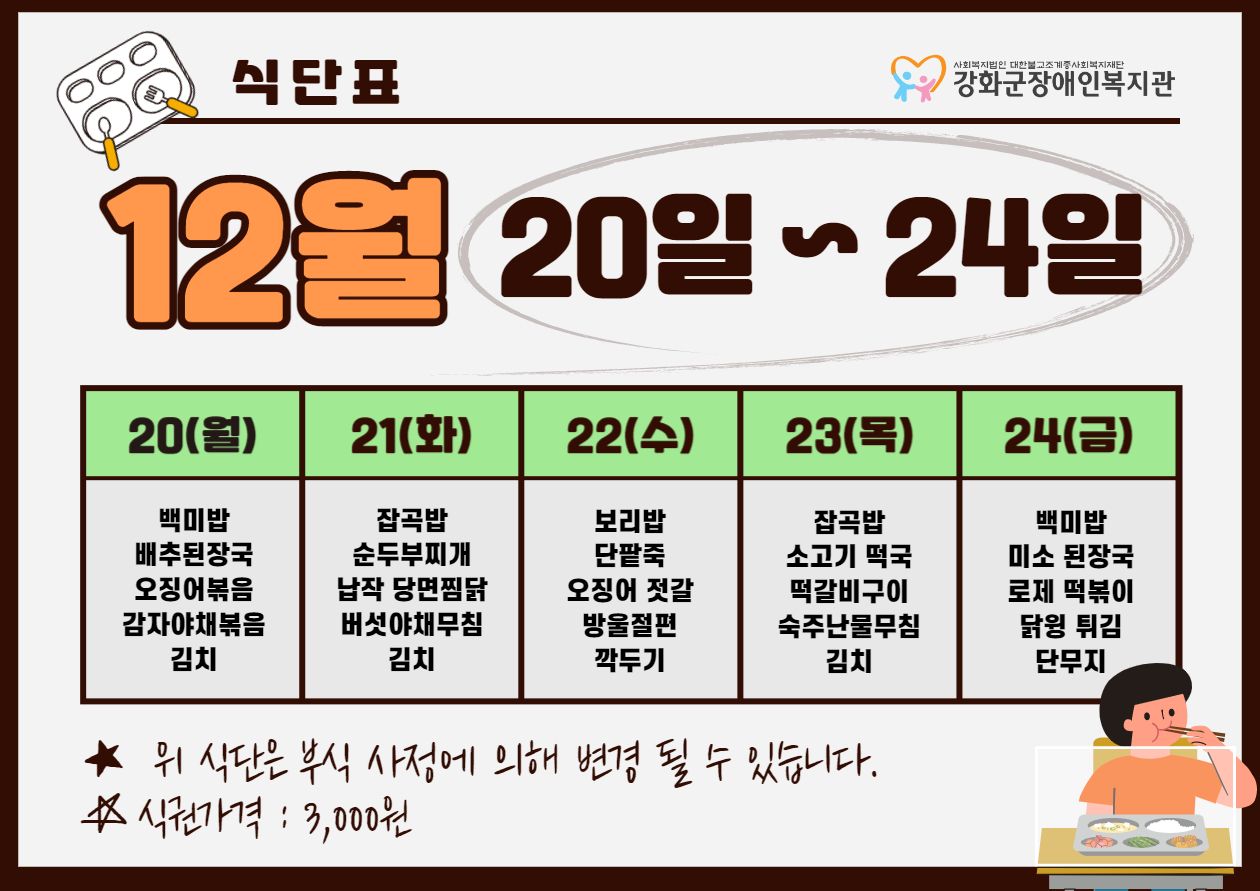 2021³â 12¿ù 4ÁÖ ½Ä´ÜÇ¥(12. 20. ~ 12. 24)