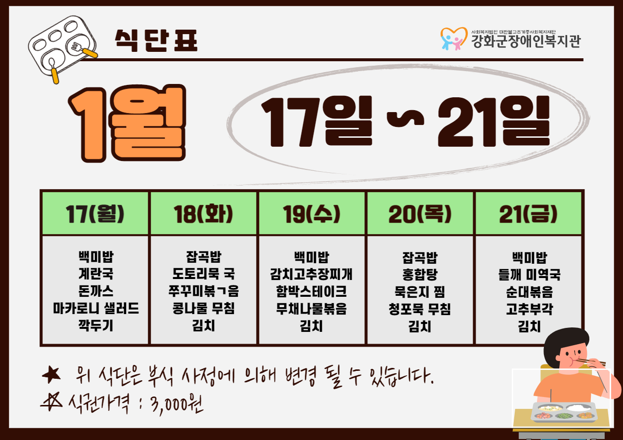 2022³â 1¿ù 3ÁÖ ½Ä´ÜÇ¥(1. 17. ~ 1. 21)