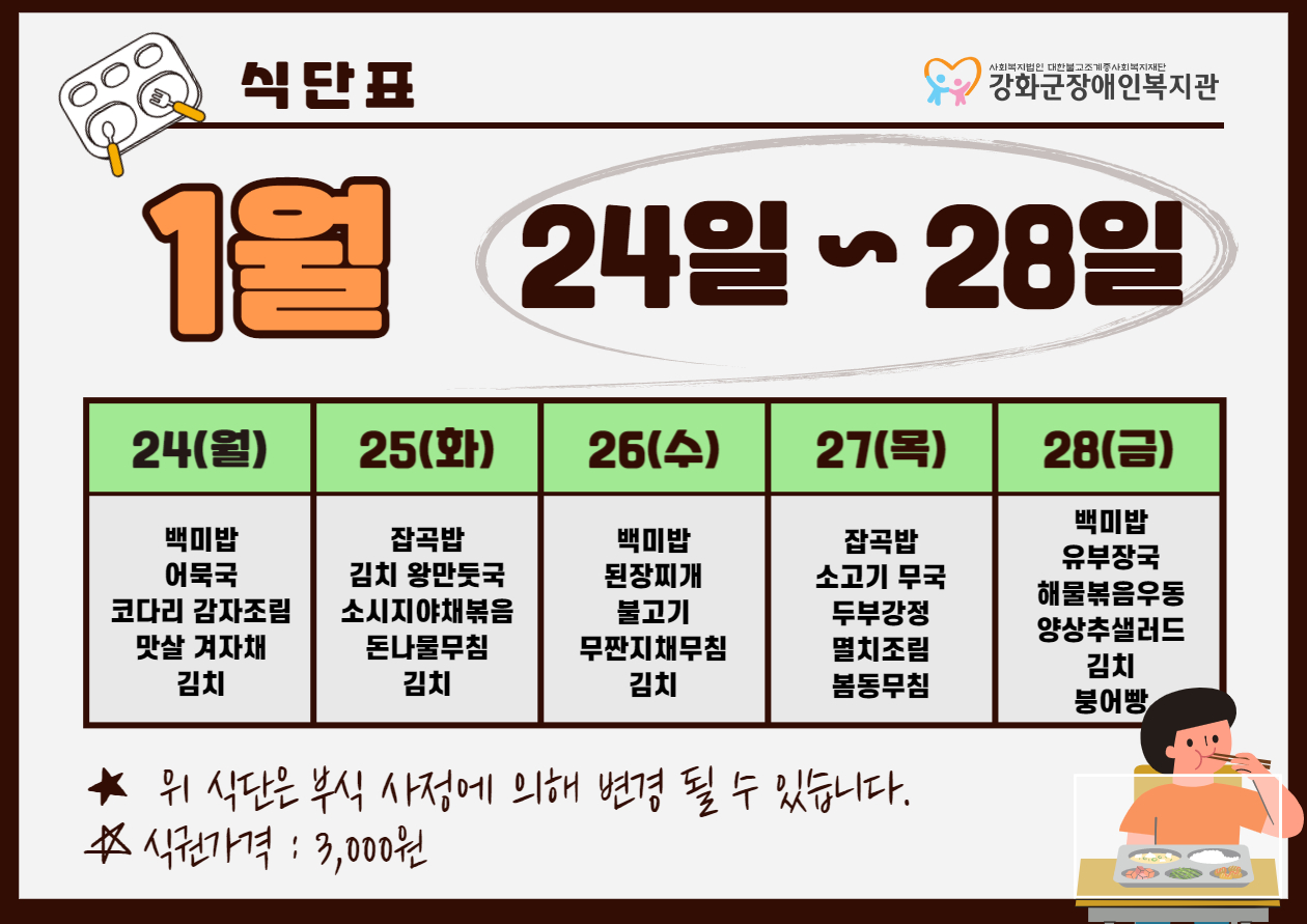 2022³â 1¿ù 4ÁÖ ½Ä´ÜÇ¥(1. 24. ~ 1. 28)