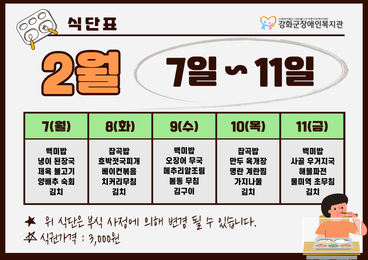 2022³â 2¿ù 2ÁÖ ½Ä´ÜÇ¥(2. 7. ~ 2. 11.)