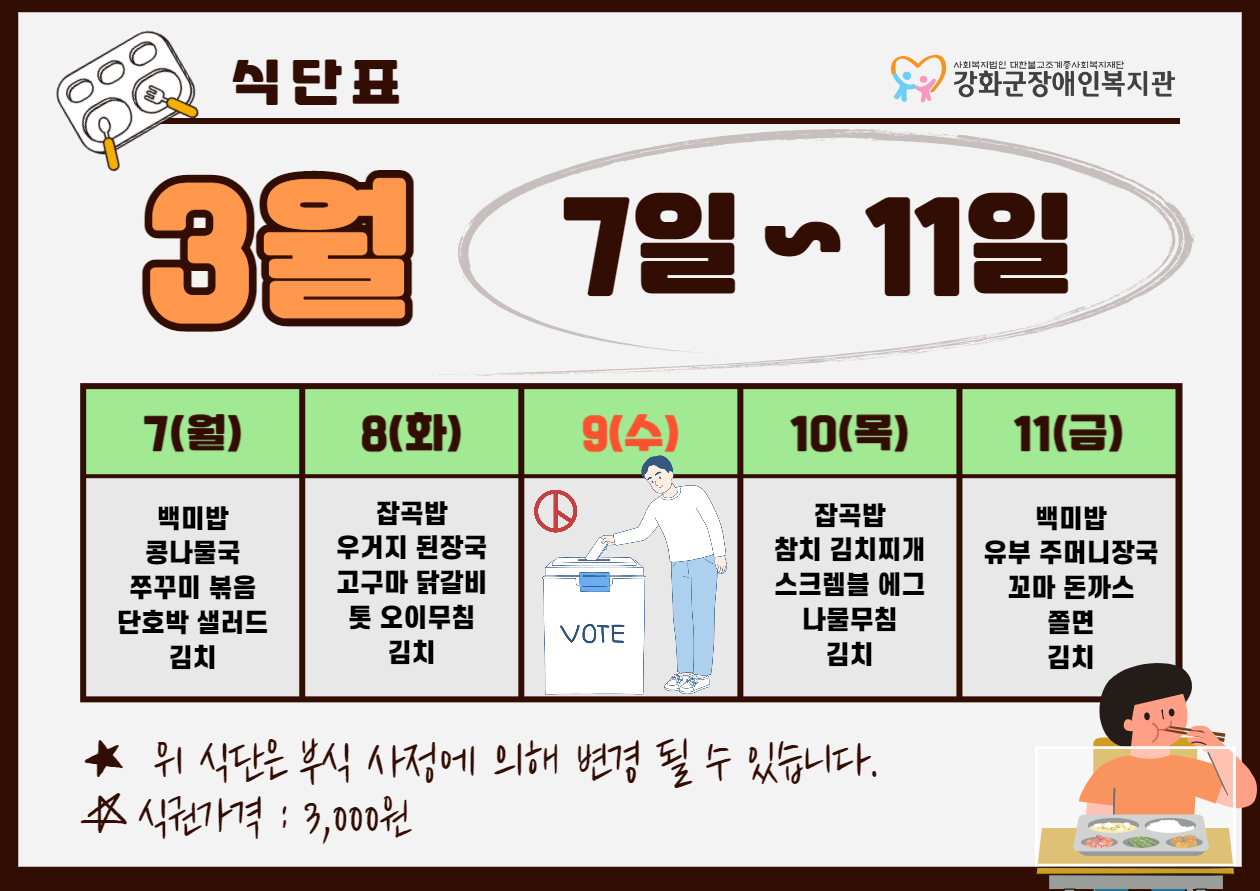 2022³â 3¿ù 2ÁÖ ½Ä´ÜÇ¥(3. 7. ~ 3. 11.)