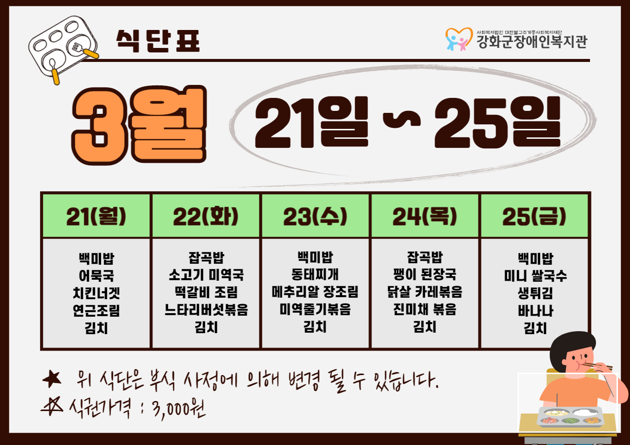 2022³â 3¿ù 4ÁÖ ½Ä´ÜÇ¥(3. 21. ~ 3. 25.)