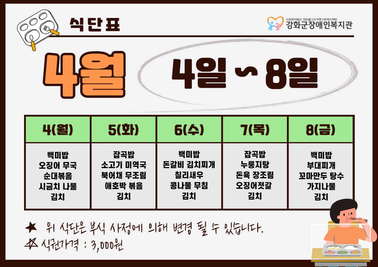 2022³â 4¿ù 1ÁÖ ½Ä´ÜÇ¥(4. 4. ~ 4. 8)