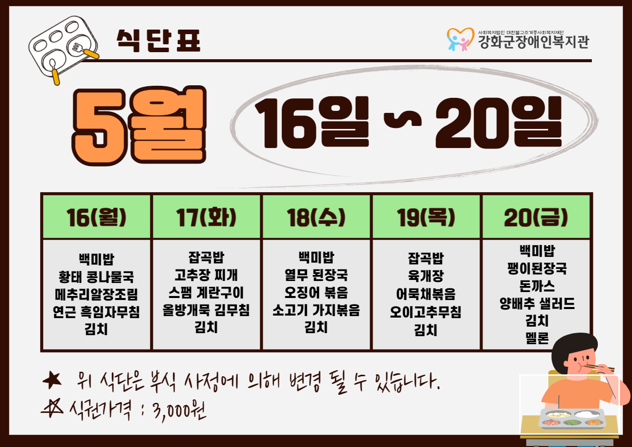2022³â 5¿ù 3ÁÖ ½Ä´ÜÇ¥(5. 16. ~ 5. 20.)