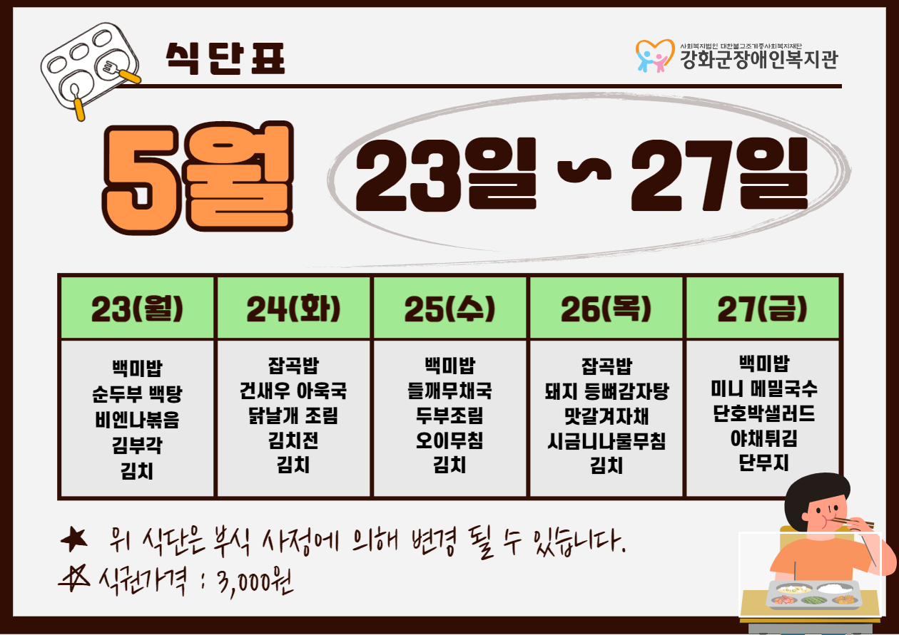 2022³â 5¿ù 4ÁÖ ½Ä´ÜÇ¥(5. 23. ~ 5. 27.)